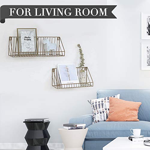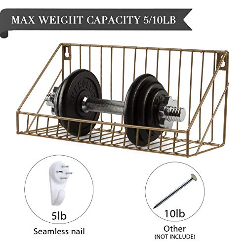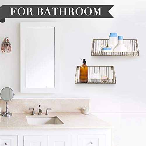 AGSIVO Estantería de Pared, 2pcs Estantería Colgante, Estantes Flotantes en Metálico Decoración de Pared para Sala de Estar, Cocina, Dormitorio, Baño (Oro)