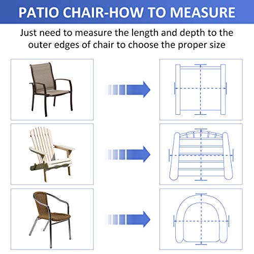 - ✔ 【 TAMAÑO -- PERFECTO COMPATIBILIDAD 】 La funda protectora de silla impermeable tiene el tamaño de 75 x 75 x 120 cm. Adecuado para cubrir el banco, muebles de jardín como sillas apilables, sillas de jardín con reposabrazos, sillas de balcón o sillas de patio.