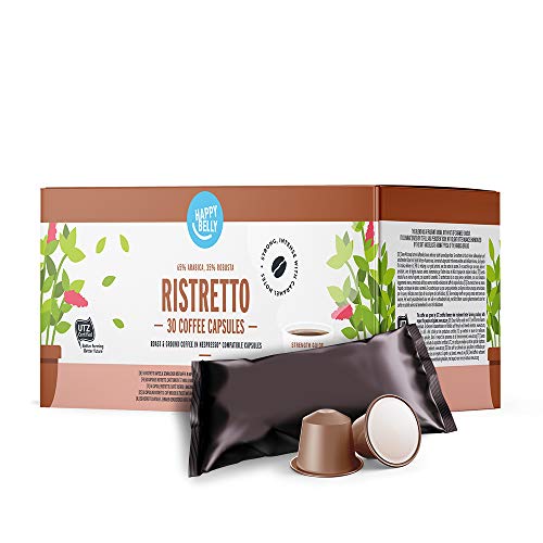 1 Marca Amazon – Happy Belly Ristretto Café UTZ molido de tueste natural en cápsulas (compostables) compatibles con Nespresso, 30 cápsulas (3×10)