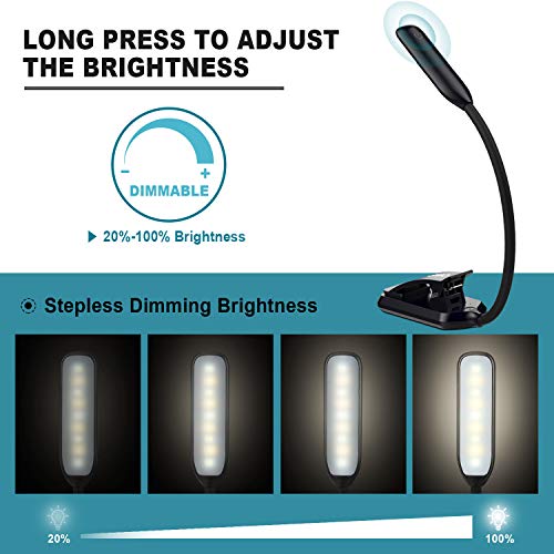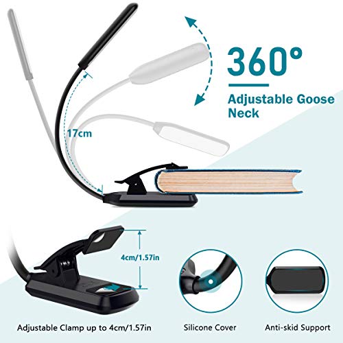 - 【Portátil y Usos Múltiples】- Con dos silicona antideslizantes en el clip, clip ajustable puede sujetar hasta 4cm. Se puede sujetar la lámpara de lectura con libros, revistas, archivos, atril, cama, tableta, computadoras portátiles, PC y estanterías, etc. Perfecto para usar en estudio, oficina, habitación, escuela, aviones, trenes y automóviles, así como en cualquier otra ocasión.