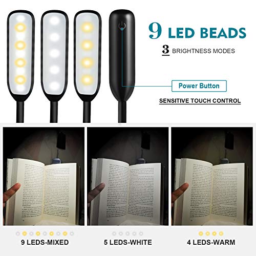 9 LED Luz de Lectura Libro, OMERIL Lampara Lectura Recargable con Sensor Táctil, 3 Modos de Brillo Ajustable