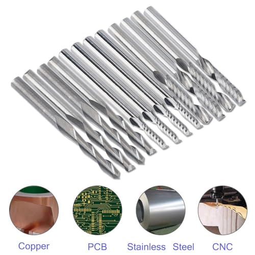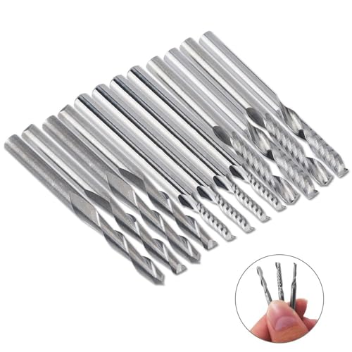 Afunta Juego de 12 molinillos de corte de carburo para fresadora de punta fina, 4 piezas de 1/8 pulgadas CNC de doble flauta + 8 piezas 1 cortador de flauta de un solo borde para nailon
