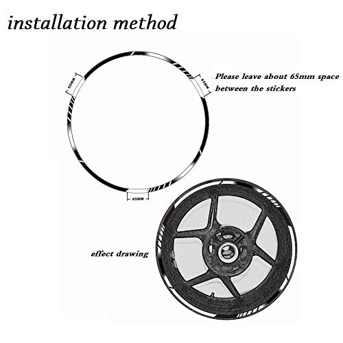 • 4 adhesivos para llanta trasera grandes interiores, 4 adhesivos para llanta delantera pequeños interiores, 12 pegatinas de borde exterior (3 a cada lado de cada rueda), 12 franjas de capas intermedias de llanta exteriores rápidas + 2 piezas de repuesto y 2 adhesivos de Cuerpo en 20,3 cm de longitud.