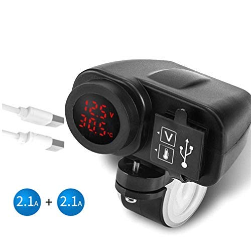 ZXYAN Pantalla de Temperatura de Voltaje de 12V Cargador USB de Motocicleta Moto Puertos duales Toma de Corriente Adaptador de Corriente a Prueba de Agua