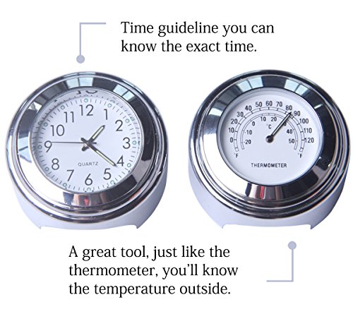 Reloj de manillar de la motocicleta y termómetro,7/8 pulgadas universal Reloj de manillar de la motocicleta impermeable Yamaha Kawasaki Honda Suzuki Harley...