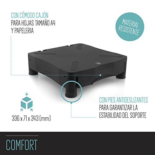 Ewent EW1280 - Soporte para Monitor con elvación Regulable y cajón Organizador