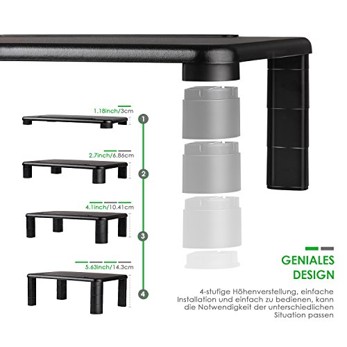 SIMBR Soporte para Monitor y Ordenador Portátil Elevador de Pantalla con 4 Elevaciones Ajustables, 28×40cm