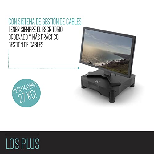 1home - Soporte de Monitor de portátil Ordenador Elevador de Monitor Negro, W420 x D235 x H104 (con Soporte para teléfono Inteligente y gestión de Cables)