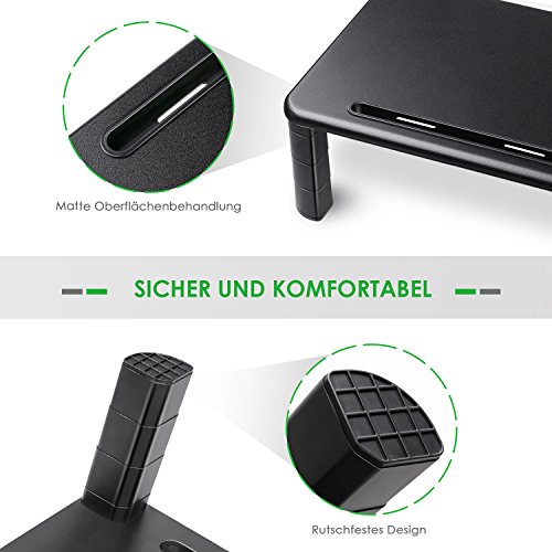 1home - Soporte de Monitor de portátil Ordenador Elevador de Monitor 2 Niveles Negro, W420 x D235 x H142mm (con Soporte para teléfono Inteligente y gestión...