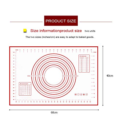 TONVER Alfombrillas de silicona antiadherente para pizza y masa gruesa para pasteles, 60 x 40 cm, accesorios de pastelería rojo rosso 60*40CM