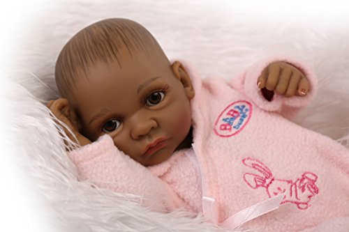 Nicery Peau Reborn Bébé Bain Poupée Indien Noir Style Vinyle Silicone Simulation dur 10inch 26cm Enfant étanche Jouet Fille rose avec Yeux acryliques Baby Doll Cadeau de Noël
