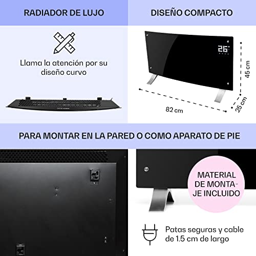 Klarstein Bornholm Curved - Convector calefactor eléctrico , Radiador , 2000W , Protección antisalpicaduras , Modo ECO , Protección sobrecalentamiento , Seguro para niños , Negro