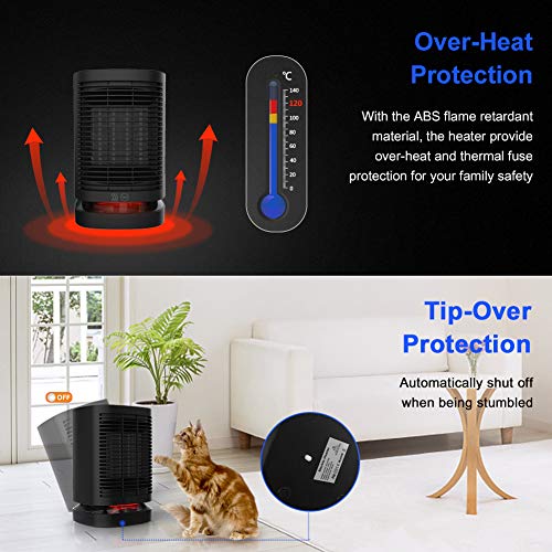 - TEMPORIZADOR PROGRAMABLE DE HASTA 8 HORAS: El temporizador programable ofrece la posibilidad de configurar el aerotermo cerámico para que funcione hasta 8 horas, lo que lo hace perfecto para utilizarlo por la noche o para calentar las habitaciones antes de volver a casa. Esto también ayuda a optimizar el consumo de energía y reducir los residuos.