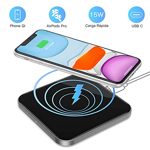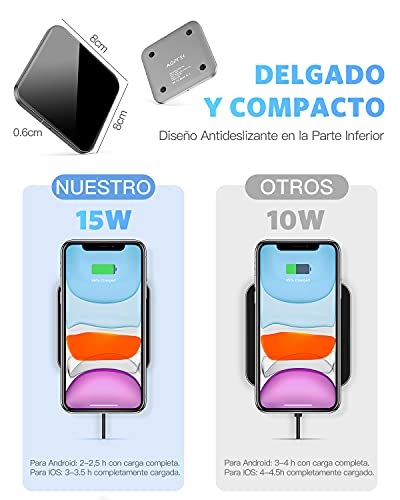 AGPTEK 15W Cargador Inalámbrico Rápido, Qi Wireless Charger 15W/10W/7.5W/5W para iPhone SE...