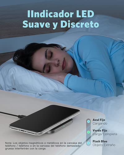 - ⚡【Indicador LED inteligente】Viene un indicador LED le permite conocer el estado de carga. El LED azul indica que el teléfono se está cargando y el LED verde indica que ha finalizado. Indicador Luz suave y sin ruido para no molestarlo durante la noche.