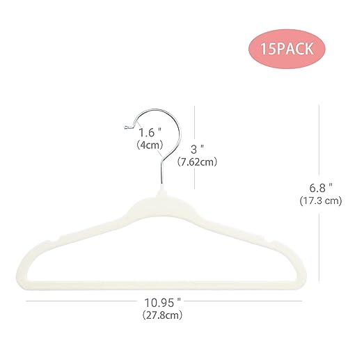 ManGotree Perchas de ropa de terciopelo para niños, perchas para ropa de bebé para niños Ahorro de espacio 15 paquete antideslizante (blanco)