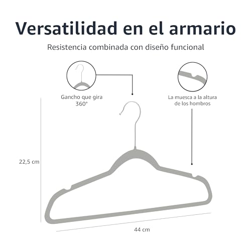 AmazonBasics - Perchas de terciopelo para trajes - Paquete de 50, Gris
