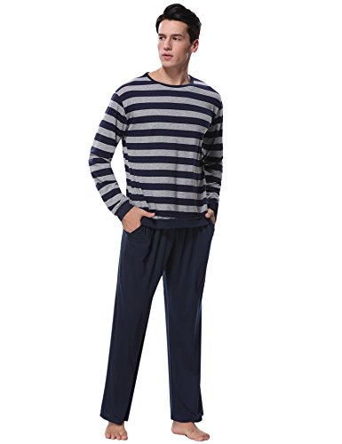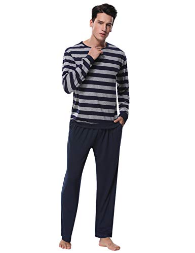 Aibrou Clásico Pijamas Hombre Invierno Algodon Mangas Pantalones Largos Set