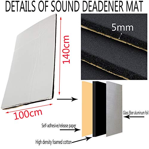 Ruesious Vehículo Insonorizante Forro Aluminio Papel Adhesivo 5mm de Espesor Espuma Aislante...