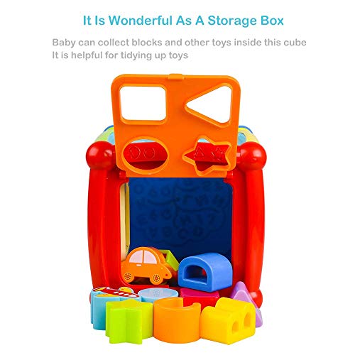 AiTuiTui Música Cubo de Actividades, 6 en 1 Incluye Caja de música Bloques Reloj Habilidades Motoras Juguetes educativos con luz de Sonido de 1 Años Regalo para bebés Niños