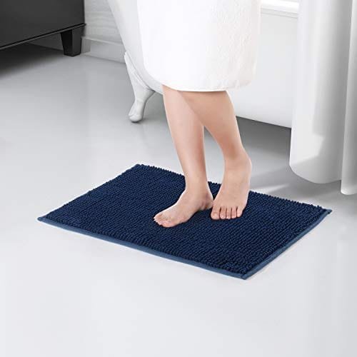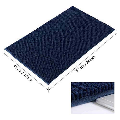 Furnily Alfombra de baño absorbente Chenille Shaggy Alfombra de baño antideslizante Alfombra suave para cuarto de ducha Alfombra de baño de gran tamaño Lavable a máquina (azul marino, 60 x 90)