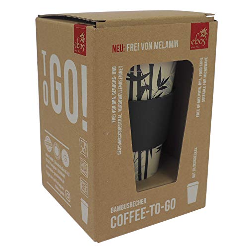 ebos Taza de bambú Coffee-to-Go, sin melamina, taza reutilizable de materiales naturales,...