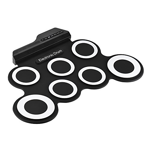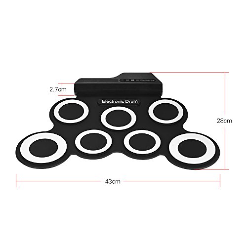 ammoon Digital electrónico Roll Up Drum Set Kit 7 Silicon Drum Pads Black-White