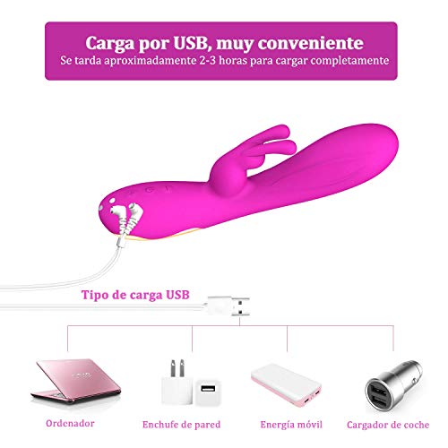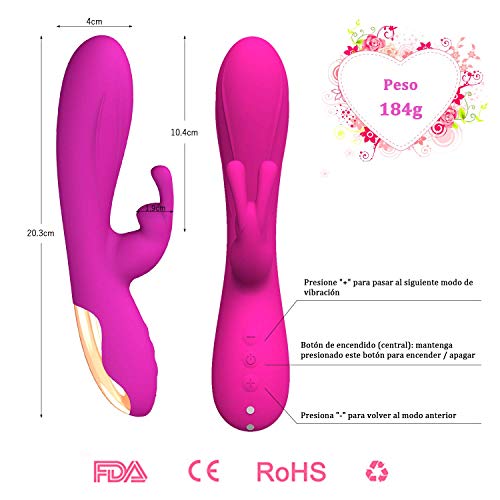 Masajeador Silicona para Mujer, Masajeador Inalámbrico con 12 Modos de Vibración para Relajarse, Motores dobles, 100% Impermeable, Recargable de USB