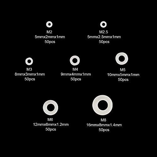 KINDPMA 500 Piezas Arandelas de Plastico Arandelas Nylon Planas Arandela Plana M2 M2.5 M3 M4 M5 M6 M8 M10 Separador Arandela Surtido Juego de Juntas Planas Redondas Blanco