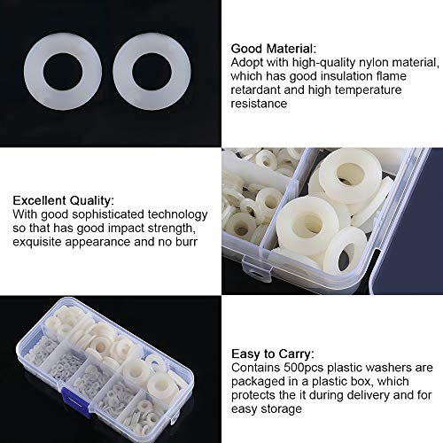 KINDPMA 500 Piezas Arandelas de Plastico Arandelas Nylon Planas Arandela Plana M2 M2.5 M3 M4 M5 M6 M8 M10 Separador Arandela Surtido Juego de Juntas Planas...