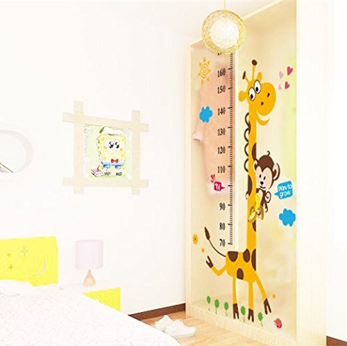 Tabla de medida pegatina de pared niños Carta de crecimiento etiqueta de la pared Medida Pegatinas de pared Dibujos Animados Búho, jirafa, León y mono Vinilo del árbol posters Desmontable para la guardería Decorativo Decoración (Árbol de la jirafa)