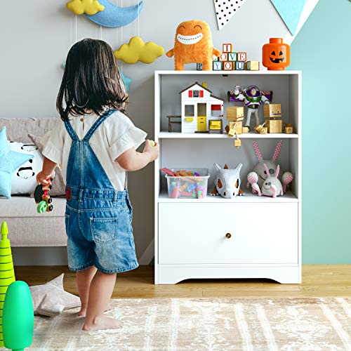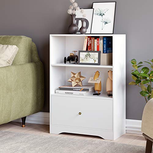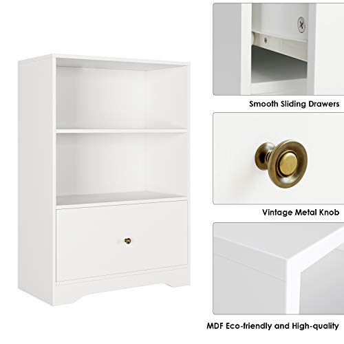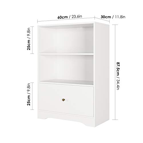 HOMECHO Armario de Suelo para Baño Salón Dormitorio Cocina Mueble Auxiliar con 1 Cajón y 2 Compartimentos Abiertos para para Almacenaje Libreria de Madera Blanco 60 x 30 x 87 cm