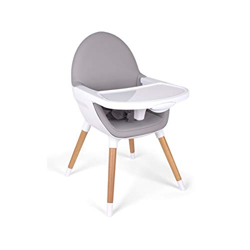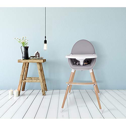 Trona Combi roba, trona con bandeja transformable en silla y mesa independientes, trona infantil en madera natural, asiento tapizado en diseño 'Heartbreaker'