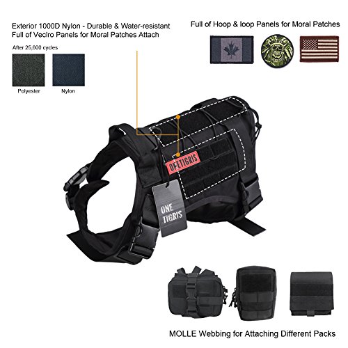 OneTigris Arneses Tipo Chaleco de Perro Impermeable de Nailon 1000D con Molle para Marcha Senderismo Caza Adiestramiento Táctico