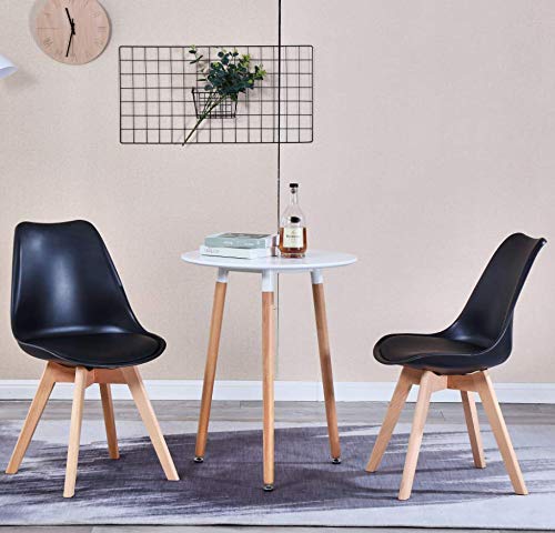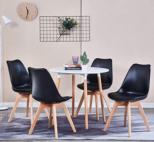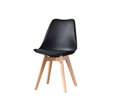 ArtDesign FR Tulip sillas de Comedor Moderno, Juego de 4, Asiento Acolchado Suave, Patas de Madera Maciza de Haya Natural, Respaldo de Forma ergonómica,Negro