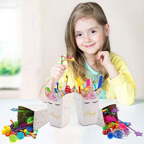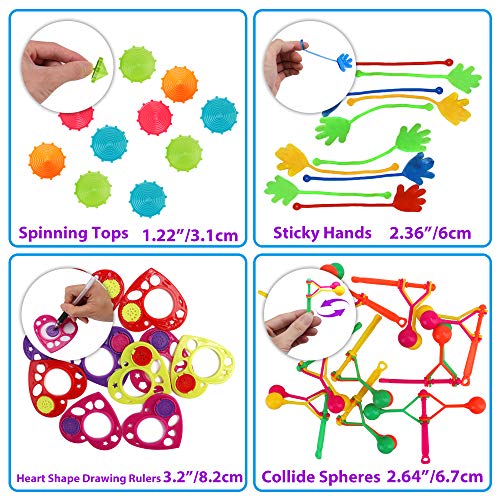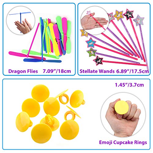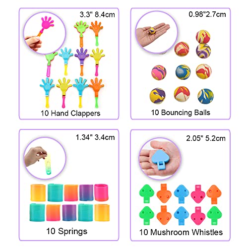 - 20 Tipos de Juguetes: Los productos hay una variedad. Todos los productos son colores aleatorios. Incluir 1*Bolso; 5*Magic Slinky Rainbow; 5*Gafas de Sol de Obturador; 5*Silbatos; 5*Varita de Estrella; 5*Slap pulseras; 5*Unicornio tatuajes; 5*Medallas; 5* Tumbler jouet; 5*Peonzas Spinning; 5*Discos De Vuelo; 5*Shooters; 5*Juguetes Lanzadores;5*Relojes; 5*Escalada Palmas pegajosas, 5*Escalada hombre, 10*Tocado de la Horquilla Clips; 10*3D insectos Rompecabezas; 10*Tocado de la Horquilla Clips; 10*2*Juguetes de Diamantes; 10*2* Anillo