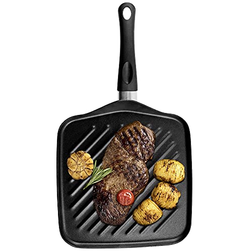 BRA A271422 Efficient - Grill asador con rayas, aluminio fundido con antiadherente Teflon Platinum Plus, apto para todo tipo de cocinas incluido inducción, libre de PFOA, negro, 22 x 22 cm