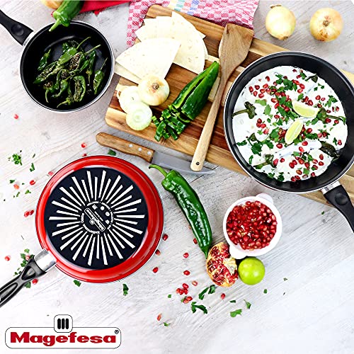 Magefesa asador 28 cm, color rojo, válido induccion y vitrocerámica. Antiadherente.