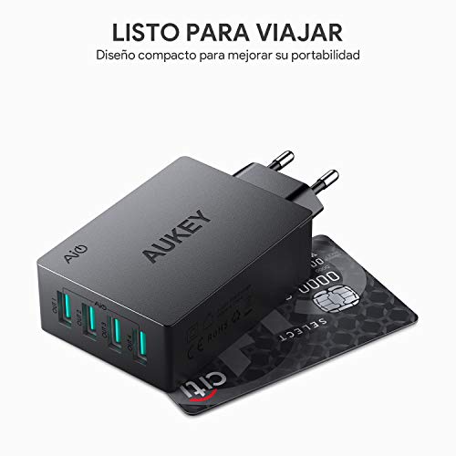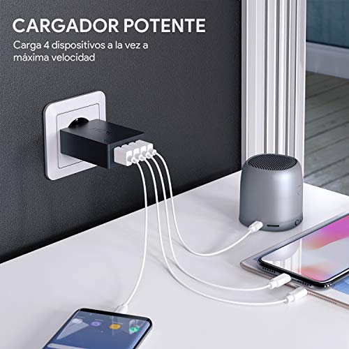 AUKEY Cargador USB con Tecnología AiPower 40W 8A 4 Puertos Cargador Móvil...
