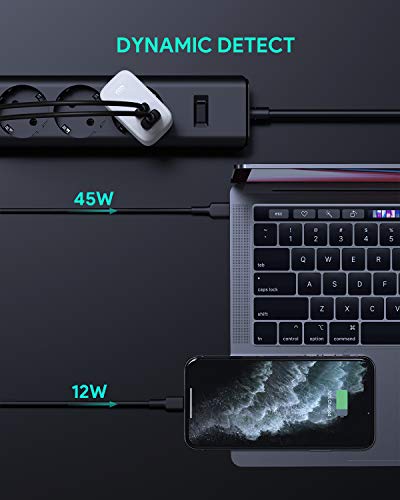 - 【 Detección dinámica 】 gracias a que dispone detección dinámica de AUKEY, su primer puerto USB-C puede generar la potencia total del cargador con 65W de suministro de energía cuando se usa solo, y 45W de suministro de energía cuando ambos puertos se usan juntos