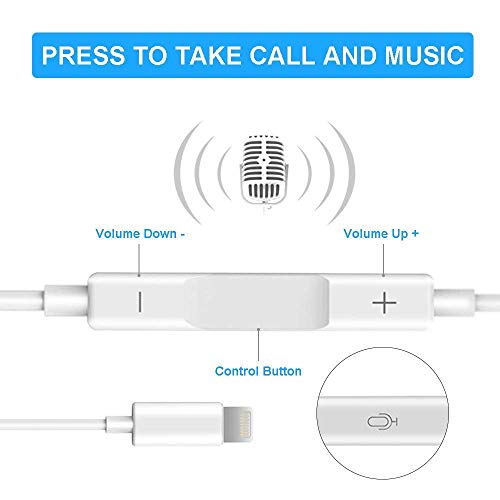 Auriculares intraurales estéreo con micrófono y Control de Volumen y Bajos compatibles con iPhone X 8 / 8Plus 7 / 7Plus (conectividad Bluetooth)