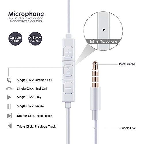 Auriculares In-Ear con Microfono para Movil, AGPTEK Auriculares con Cable Estéreo con Control Remoto, Alta Definición, Potente Bajo, 3.5MM Jack para iPhone,...