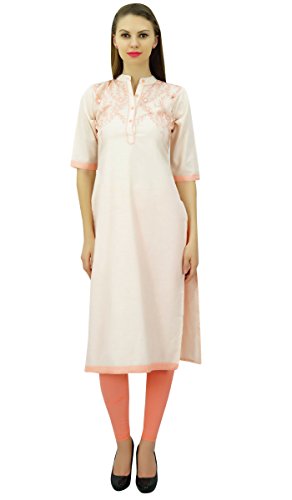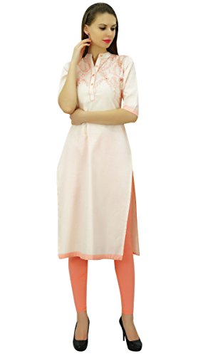 Bimba de Mujeres Auto Lino Bordado Recta Kurti Kurta Elegante Indio étnico...