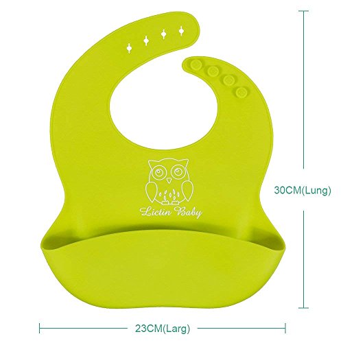 Lictin 3 Pack baberos suave de silicona impermeables para bebés pequeños (rosa/azul/verde de limón)