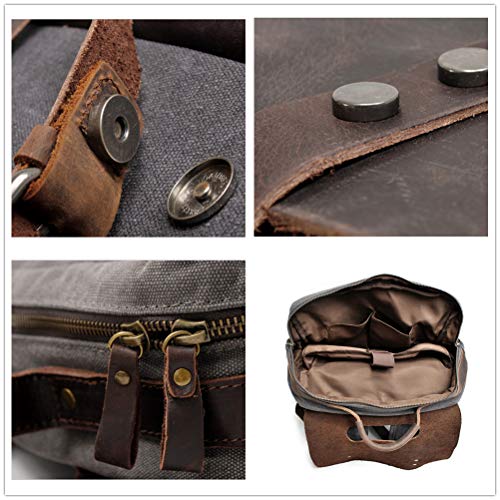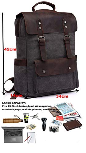TENSKY Vintage Canvas Leather Backpack Campus Book-Bag Outdoor Recreation Fits 15.6 in Laptop