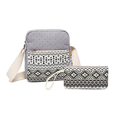 LABABE Canvas Backpack School Bags Set for Teens Girls, Casual Daypack + Shoulder Bag + Pencil Case - gray