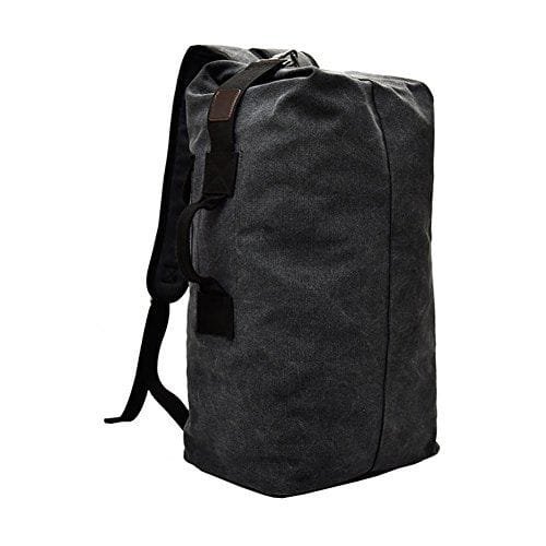 VRIKOO Cylinder Canvas Travel Backpack Large Capacity Duffel Shoulder Bag Outdoor Sport Hiking Rucksacks (Negro)
