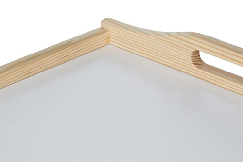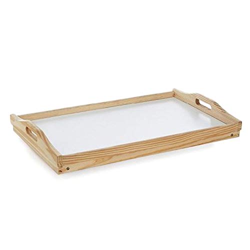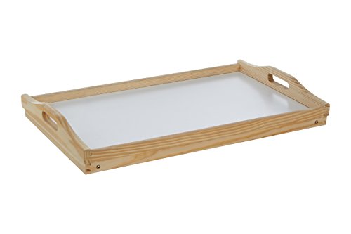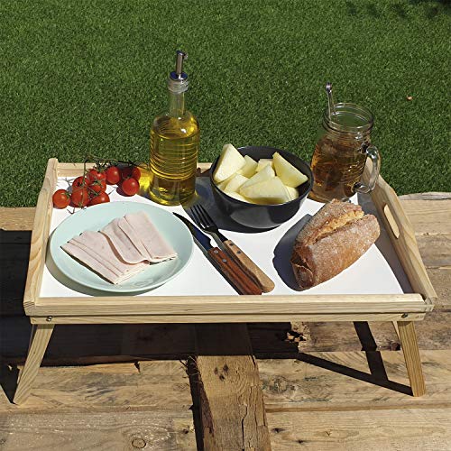 - Bandeja para servir en la cama o sofá, de madera y base blanca