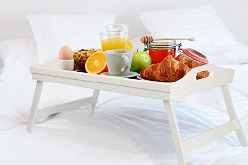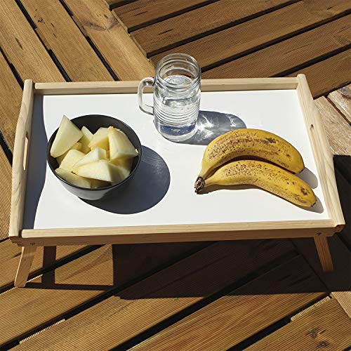 Relaxdays Bandeja Cama con Asas y Patas Plegables, Madera, Blanco, 22 x...
