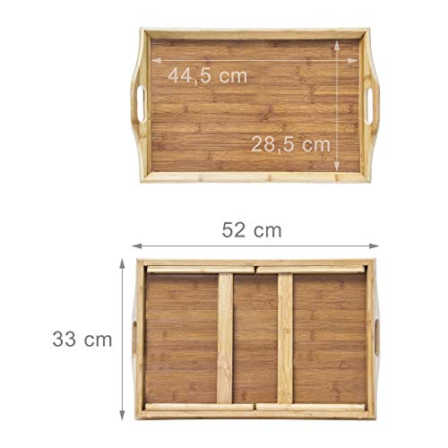 Relaxdays Bandeja, Doble función, Mesa de Desayuno, Patas desplegables, bambú, Borde Alto